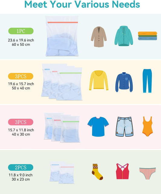 OTraki 9 PCS Mesh Laundry Bags for Delicates 4 Sizes Laundry Bags Mesh Wash Bags with Zipper Clothing Washing Bags Reusable Travel Storage Organize Bag for Clothes Underwear Bra Lingerie Socks Toy