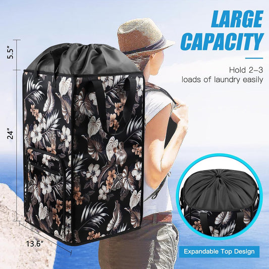 Bukere Laundry Hamper, Extra Large 2 in 1 Laundry Backpack Bag for College Students Dorm Essentials, Adjustable Shoulder Straps, Freestanding Laundry Basket for Apartment, Laundromat, Travel