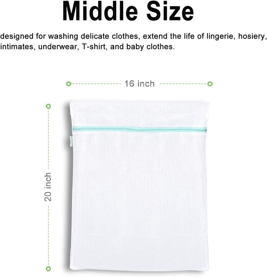 OTraki Mesh Washing Bags for Laundry 2 Pack 16 x 20 Inch Medium Mesh Bag Laundry Washer Delicates Lingerie Wash Machine Net Zipper Bag Heavy Duty Home Dorm Hotel Travel Storage Organizer, White