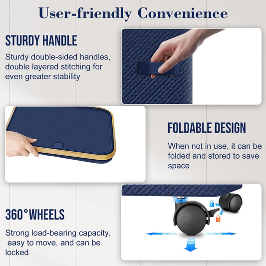 Laundry Hamper with Wheels,29 Gal (110L) Laundry Basket with lid Rolling Clothes Hamper Foldable Dirty Clothes Basket on wheels with Bamboo Frame and Bag for Bedroom, Dorm, Laundry Room-Blue