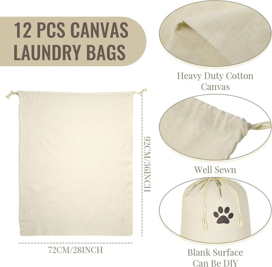 12 Pieces 28" x 36" Canvas Laundry Bags Bulk Large Cotton Laundry with Drawstring Heavy Duty Hamper Liner Washable Dirty Clothes Santa Bag for Travel Household