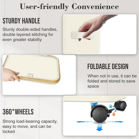 Laundry Hamper with Wheels,20 Gal (75L) Laundry Basket with lid Rolling Clothes Hamper Foldable Dirty Clothes Basket on wheels with Bamboo Frame and Bag for Bedroom, Dorm, Laundry Room-Off White
