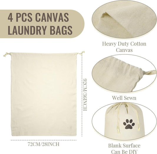 4 Pieces 28" x 36" Canvas Laundry Bags Bulk Large Cotton Laundry with Drawstring Heavy Duty Hamper Liner Washable Dirty Clothes Santa Bag for Travel Household