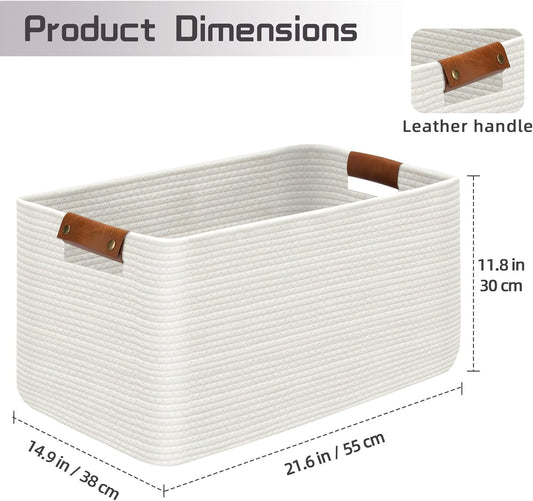 Large Collapsible Laundry Basket, Clothes Hamper for Blanket, Toy, Towels, Woven Baskets for Storage, Nursery Home Decor Living room 21.6" x 15" x 11.8" White