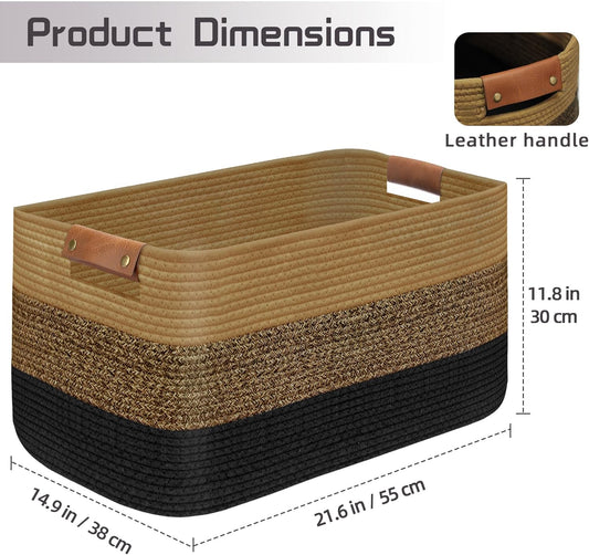 Laundry Hamper 96L Extra Large Laundry Basket, Woven Blanket Basket, Cotton Woven Storage Hamper with Handles for Living Room, Large Baskets for Pillows, Blankets, Clothes-Gradient Black