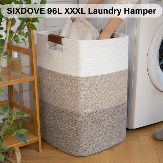 Laundry Hamper 96L Extra Large Laundry Basket, Woven Blanket Basket, Cotton Woven Storage Hamper with Handles for Living Room, Large Baskets for Pillows, Blankets, Clothes-Gradient Grey