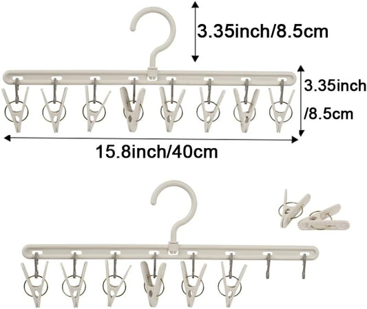 Clothes Hanger 2 Pack with 8 Clips,Clothes Drying Racks Windproof for Drying Socks Bras Underwears Baby Clothes, Hats Scarfs Towels Pants and Gloves Diaper
