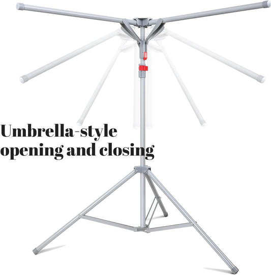 Tripod Clothes Drying Rack, Garment Rack Portable and Foldable Space Saving Laundry Drying Rack - Dryer Rack Clothing Floor Folding Balcony Bedroom Household (Silver(Aluminum), 16 rods)