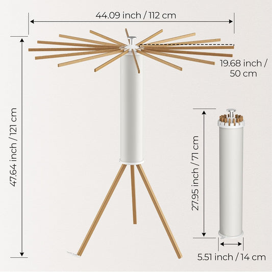 Tripod Clothes Drying Rack, Garment Rack Portable and Foldable Space Saving Laundry Drying Rack - Dryer Rack Clothing Floor Folding Balcony Bedroom Household (Beige(Wood), 16 rods)