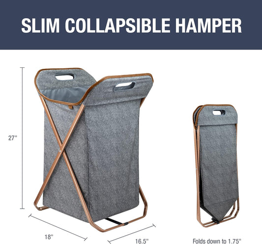 CleverMade Collapsible Laundry Hamper X-Frame Laundry Basket - Heather Gray 71L / 18 Gal - Space Saving Storage Container Organizer Stylish Home Decor