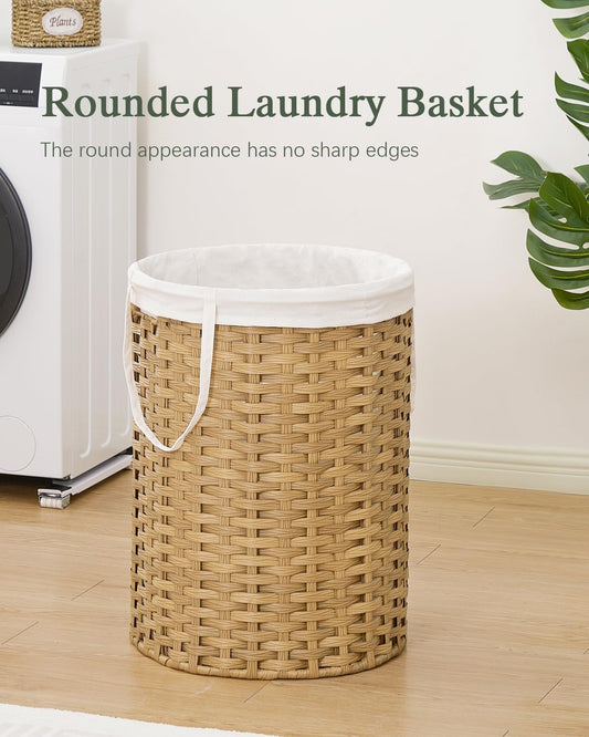 Laundry Basket Round Rattan Laundry Hamper 29.1 Gal (110 L) Handwoven Large Wicker Basket with Handles, Wicker Hamper with Removable Bags and 2 Mesh Bags for Bathroom Living Room Brown