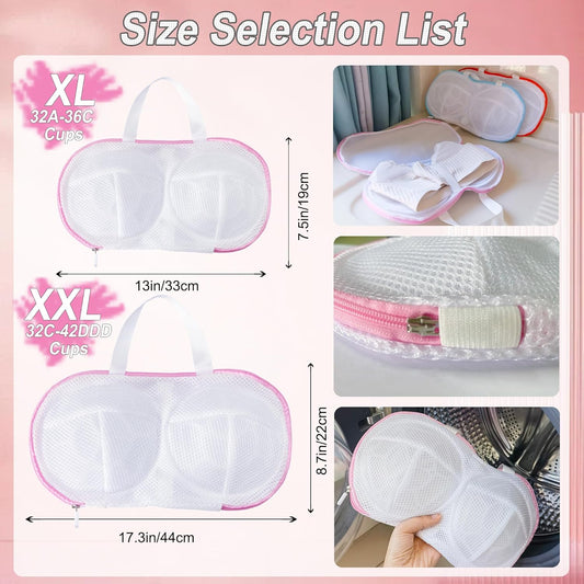 8 Pcs Bra Wash Bags for Laundry - Lingerie Mesh Bag Set Underwear Brassiere for Washing Machine With Zipper for Women Delicates Pink (32A-36C Cup)