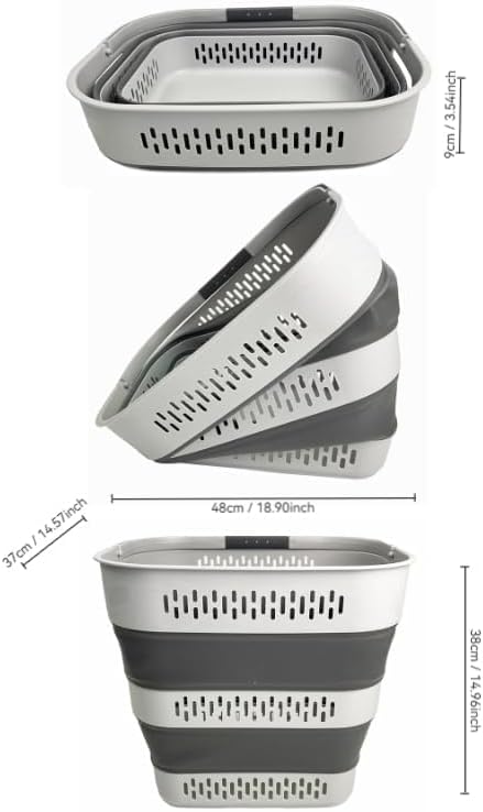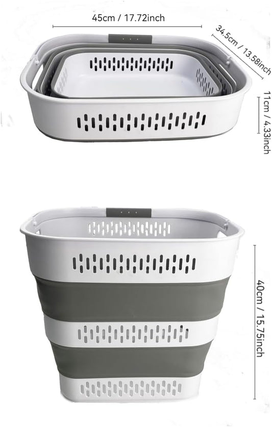 SAMMART 40L (10.5 Gallon) Collapsible Plastic Laundry Basket with Handles - Foldable Pop Up Storage Container/Organizer - Portable Laundry Hamper - Space Saving (1, White/Grey)
