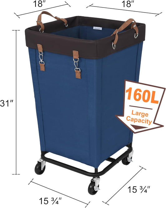 StorageWorks 160L Laundry Basket with Wheels, Large Rolling Hampers for Clothing Organizer, Dirty Clothes Basket for Hotel, Home, Closet, Dorm, Blue