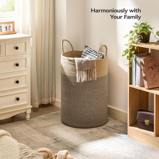 Laundry Basket,Woven Cotton Rope Laundry Hamper,Versatile Storage for Dirty Clothes,Baby Toys,and Blankets in Bathroom, Nursery,and Living Room (Brown, 60L)