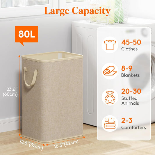 Lifewit 80L Large Tall Laundry Hamper, Collapsible Laundry Basket with Handles, Foldable Clothes Hampers for Laundry, Portable Dirty Clothes Hamper for Dorm College Bedroom Bathroom, Beige