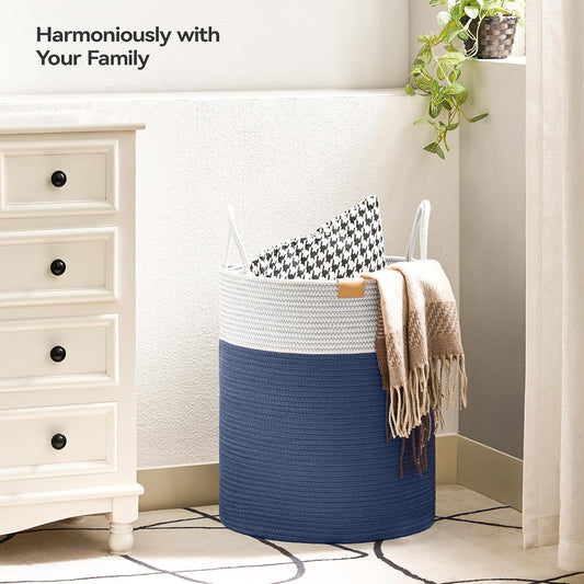 Laundry Basket,Woven Cotton Rope Laundry Hamper,Versatile Storage for Dirty Clothes,Baby Toys,and Blankets in Bathroom, Nursery,and Living Room (Blue, 40L)