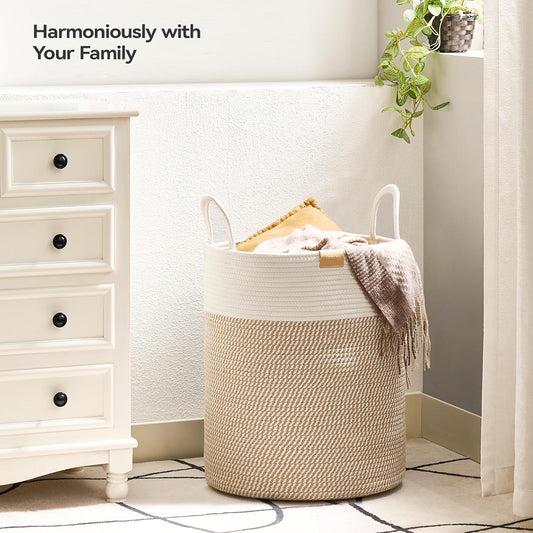 Laundry Hamper 62L,Large Laundry Basket for Clothes,Decorative Storage Basket for Blankets,Cotton Rope Woven basket for bedroom,Brown White