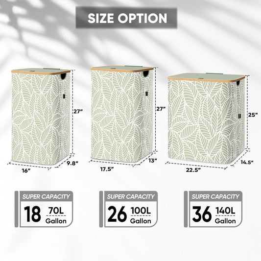 BALEINE Laundry Hamper with Lid, Tall Laundry Baskets with Bamboo Pull Handles, Large Laundry Bin with Internal Support (36 Gal/140L, Antique Foliage)