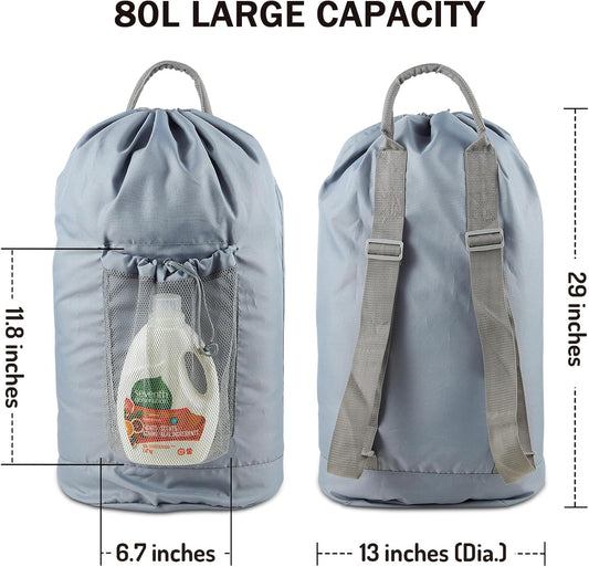 Backpack Laundry Bag, Large Laundry Backpack with Detergent Holder and Adjustable Shoulder Straps for College Travel Dorm Room (Gray)