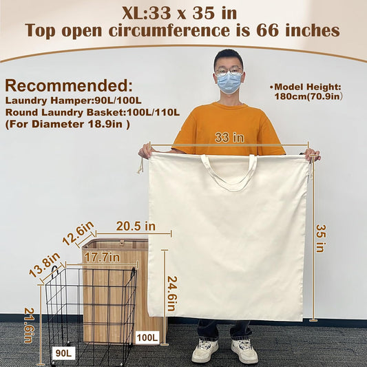 Canvas Laundry Bag 33"x 35", Thick Cotton Laundry Bag with Handles & Drawstring, Extra Large Heavy Duty Washable Basket Liner Hamper Liner Canvas Storage Sack (Beige XL, 1 Pack)