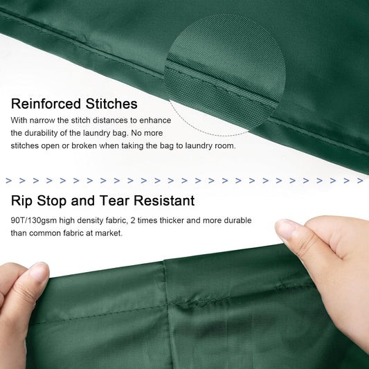 Polecasa Heavy Duty Large Laundry Bag with 130gsm Tear Resistant Fabric and Handles, Easy to Carry Durable Dirty Clothes Drawstring Bag, Perfect for College Dorm,Travel, 2 Pack 28”x36”,Green