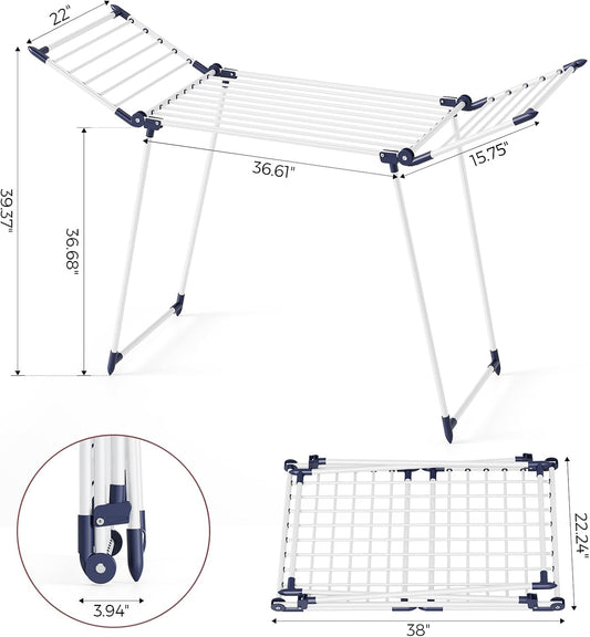 APEXCHASER Clothes Drying Rack Foldable, Large Drying Rack Clothing, Winged Laundry Rack Folding Indoor Outdoor, Metal Clothes Airer for Bedding Towel Sweater Heavy Duty, 68.9" X 22" X 39.3", White