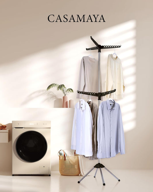 Clothes Drying Rack Foldable, 59 inch Tripod Laundry Drying Rack Indoor with Rotating Clothes Rail for 27 Pieces of Clothes, Space Saving, Stainless Steel, Black and Silver CDR001B01