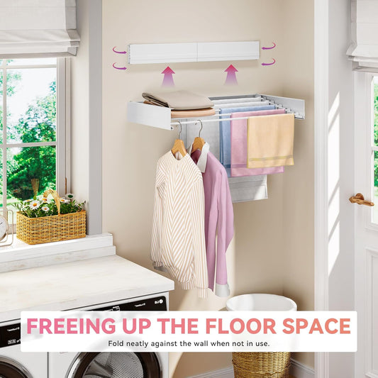Dr.DJ Clothes Drying Rack Wall Mounted, Retractable & Foldable Clothes Hanger for Laundry Room Organization and Storage, Clothes Hanger Rack for Dorm, Closet, Balcony, Laundry Room(1P, Metal, White)