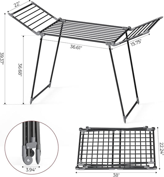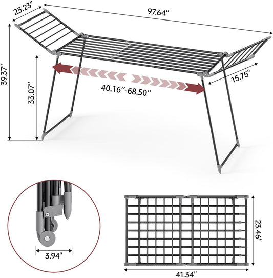APEXCHASER Clothes Drying Rack Foldable, Large Drying Rack Clothing, Winged Laundry Rack Folding Indoor Outdoor, Metal Clothes Airer for Bedding Towel Sweater Heavy Duty, 68.9" X 23.6" X 41.3", Black