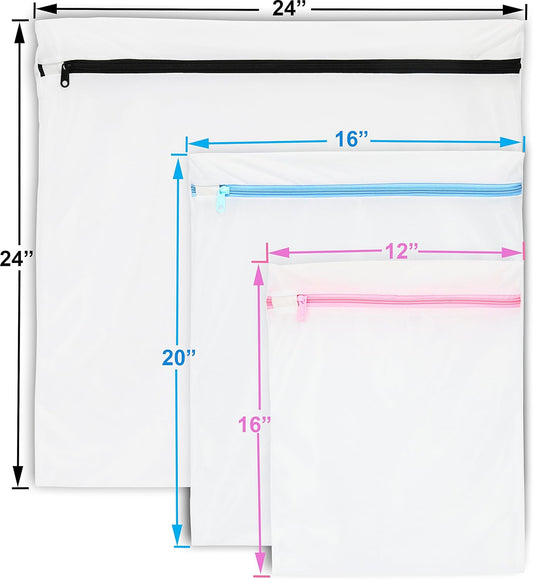 Mesh Laundry Bags, Mesh Wash Bags, Durable Mesh Structure with Strong Zipper, Suitable for Underwear, Delicate Clothes, Pants, Shoes, Socks Washing (Honey mesh, Large 20 * 24in*3pcs)