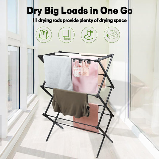 Household Indoor Folding Clothes Drying Rack, Dry Laundry and Hang Clothes,Towel Rack (Black)