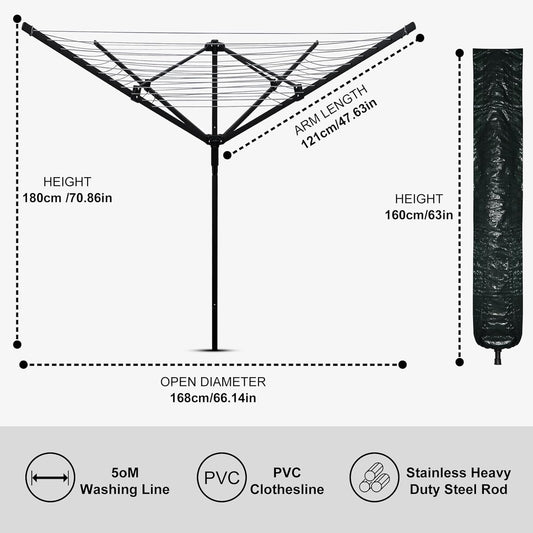 Umbrella Clothesline Outdoor with 40 Pegs, 4 Arms 12 Lines Rotary Clothesline Folding Clothes Drying Rack, 165 Ft Heavy Duty Clothes Line Outdoors for Backyard, Garden