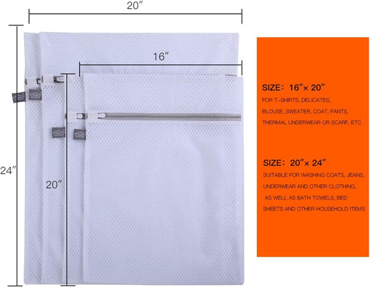 4 pcs Durable Honeycomb Mesh Laundry Bags for Delicates 16" x 19" (2 Large) 12" x 15" (2 Medium)
