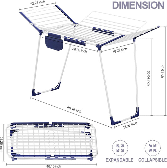 Clothes Drying Rack, Foldable 2-Level Laundry Racks for Drying Clothes Rack,Stainless Steel Drying Rack Clothing Collapsible for Indoor Outdoor,with Height-Adjustable Wings