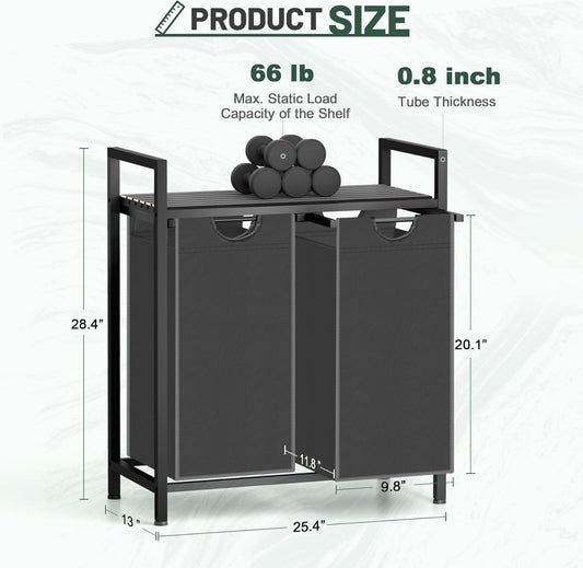 Laundry Hamper, Laundry Sorter with 2 Pull-Out Removable Oxford Fabric Bags Cloth Laundry Basket 2 x 10 Gallons (Charcoal Black)