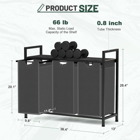 Laundry Hamper, Laundry Sorter with 4 Pull-Out Removable Oxford Fabric Bags Cloth Laundry Basket 4 x 10 Gallons (Grey and Charcoal Black)