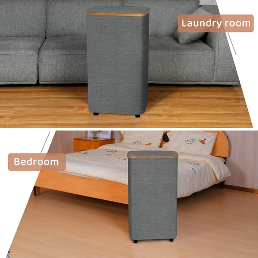 Slim Laundry Basket with Wheels,Narrow Hampers for Laundry, Laundry Hamper with Lid&Bamboo Handles,Dirty Clothes Hamper for for Bathroom Bedroom Dorm, 60L Grey
