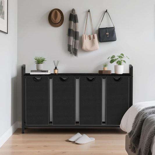 Laundry Hamper, Laundry Sorter with 4 Pull-Out Removable Oxford Fabric Bags Cloth Laundry Basket 4 x 10 Gallons (Charcoal Black)