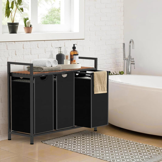 Laundry Hamper, Laundry Sorter with 3 Pull-Out Removable Oxford Fabric Bags Cloth Laundry Basket 3 x 10 Gallons (Black and Rustic Brown)
