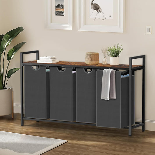 Laundry Hamper, Laundry Sorter with 4 Pull-Out Removable Oxford Fabric Bags Cloth Laundry Basket 4 x 10 Gallons (Black and Rustic Brown)