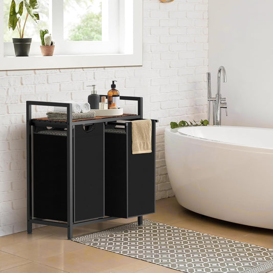 Laundry Hamper, Laundry Sorter with 2 Pull-Out Removable Oxford Fabric Bags Cloth Laundry Basket 2 x 10 Gallons (Black and Rustic Brown)