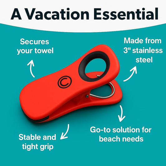 CoreClips Towel Clips for Beach Chairs - Set of 4 Pool Towel Holder Clips for Lounge Chairs on Cruise, Large 2.5” Opening Heavy Duty Clip for Towels on Boat Loungers with Travel Pouch - Red