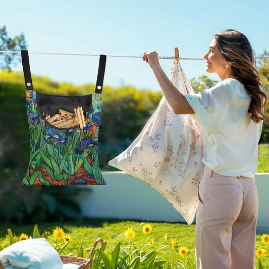 Van Gogh Wheatfield Laundry Clothespin Bags Hanging Storage Organizer 12 x 14.5 Inch Clothes Pin Bag Waterproof Clothespin Bag Clothespin Holder Large Opening and Hanging Rope