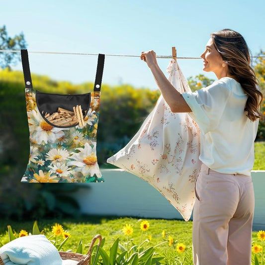 Art Flowers Clothespin Bag with Hanging Hook Summer Laundry Clothes Pin Holders Waterproof Clothes Pin Hanging Bag Clothespin Storage Organizer with Large Opening