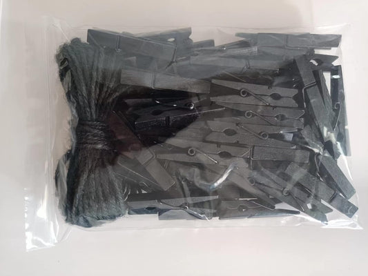 1.9 Inch Black Wooden Clothespins for Pictures Halloween DIY Art Crafts Clothesline Clips Laundry with Jute Twine Pack 50