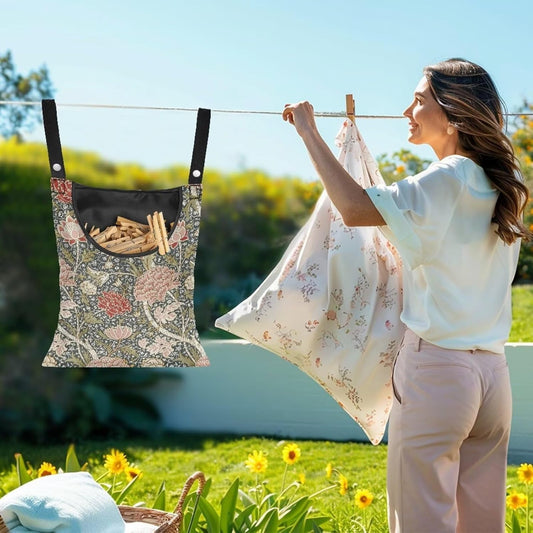 William Morris Works Print Clothespin Holder with Large Opening 14.5"x12" - Multipurpose Outdoor Storage Bag - Durable Polyester Construction with Double Stitched Seams Laundry Centers