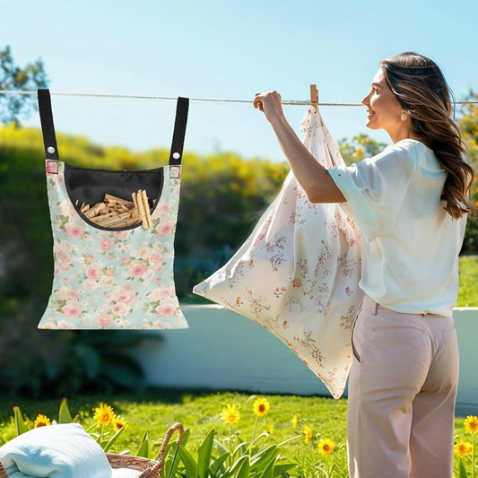 Clothespin Bag with Large Capacity for Mini and Wooden Clothespins with Large Opening Storage Organizer Laundry Hanging Bag - Floral Pattern