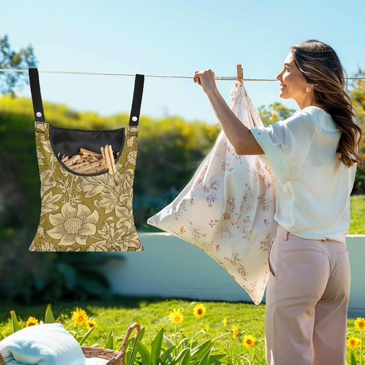 Clothes Pin Hanging Bag with Big Opening Storage Clothes Pins & Mini Clothespins, Hanging Laundry Bag Fits Retractable Clothes Line Outdoors - Daisy Print