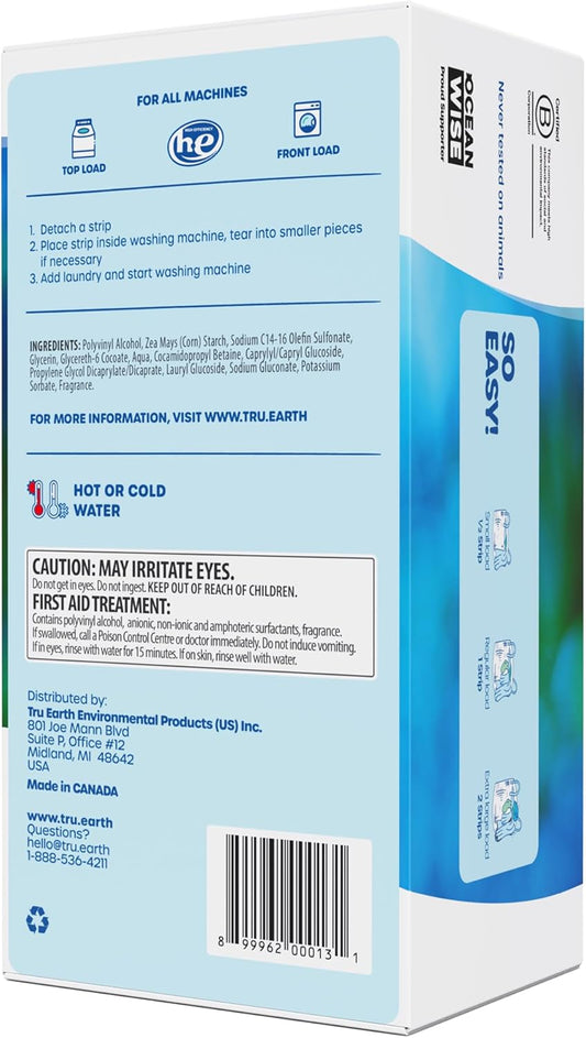 Tru Earth Compact Dry Laundry Detergent - Up to 128 Loads (64 Sheets) - Paraben-Free - Original Eco-Strip Liquidless Detergent, Travel | Packaging May Vary